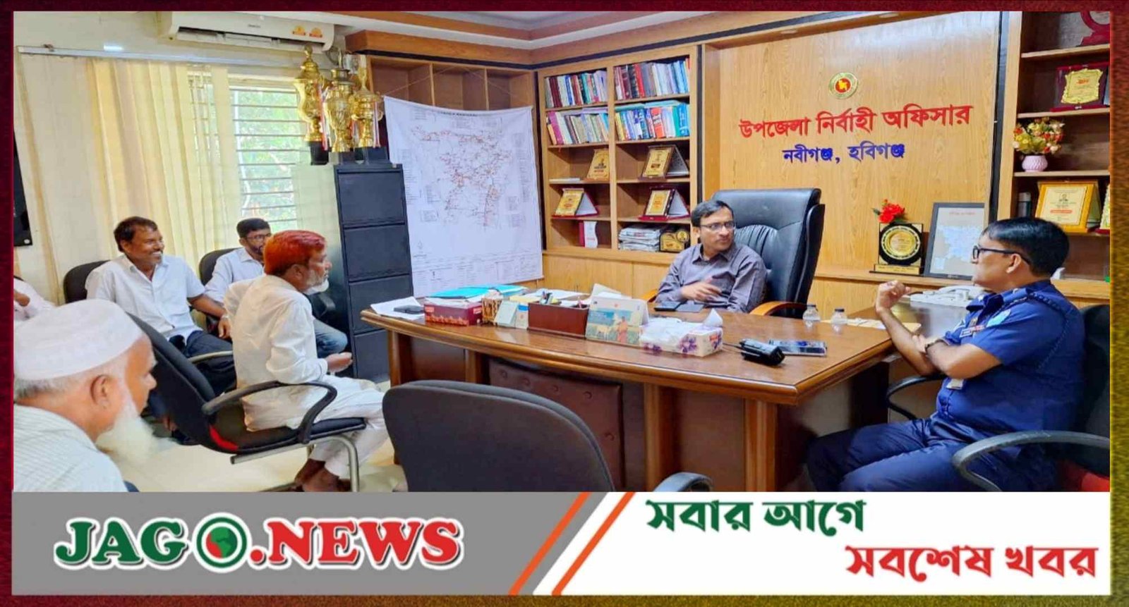 সোমবার দুপুরে নবীগঞ্জ উপজেলা নির্বাহী কর্মকর্তার কার্যালয়ে বিরোধ নিষ্পত্তির লক্ষ্যে দুই পক্ষের প্রতিনিধিদের নিয়ে এক গুরুত্বপূর্ণ বৈঠক অনুষ্ঠিত হয়।বৈঠকে সভাপতিত্ব করেন ইউএনও মো. রুহুল আমিন। উপস্থিত ছিলেন নবীগঞ্জ থানার অফিসার ইনচার্জ (ওসি) শেখ মো. কামরুজ্জামান, পানিউমদা ইউনিয়ন বিএনপির সভাপতি মো. গোলাম নবী তালুকদার, ইউপি সদস্য আরজদ আলী, জহির আহমদ জয়, খায়রুল, ফজল, মখলু চৌধুরী, দুদু, ইউপি সচিব মো. সিদ্দিক আলী, বায়োজিত উল্লাহ, শামীম আহমেদ মহসিনসহ স্থানীয় গণ্যমান্য ব্যক্তিরা।